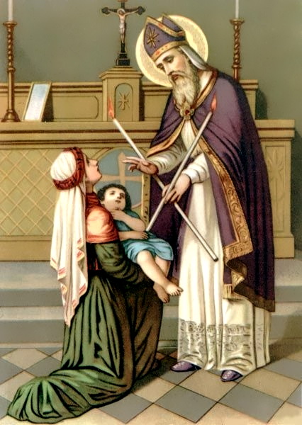 En la Edad Antigua era invocado como Patrono de los cazadores, y las gentes le tenían gran fe como eficaz protector contra las enfermedades de la garganta. El 3 de febrero bendecían dos velas en honor de San Blas y las colocaban en la garganta de las personas diciendo: "Por intercesión de San Blas, te libre Dios de los males de garganta". Cuando los niños se enfermaban de la garganta, las mamás repetían: "San Blas bendito, que se ahoga el angelito".