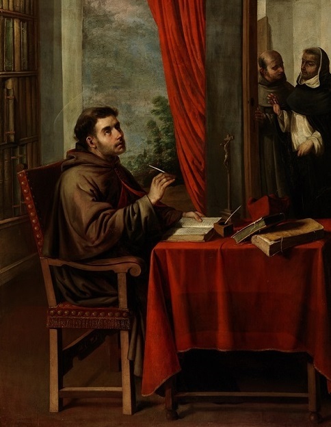 A San Buenaventura le recomendaron que escribiera la biografía de su gran protector San Francisco de Asís (la cual resultó muy hermosa) y dicen que cuando estaba redactándola, llegó a visitarlo el sabio más famoso de su tiempo, Santo Tomás de Aquino, el cual al asomarse a su celda y verlo sumido en la contemplación y como en éxtasis, exclamó: "dejemos que un santo escriba la vida de otro santo", y se fue. Así que estos dos sabios tan famosos no se trataron en vida pero se admiraron mutuamente.