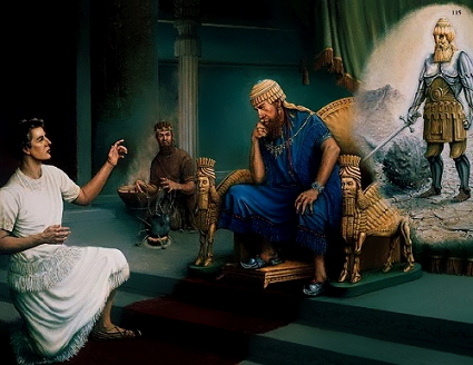 Dios anunció que al rey Nabucodonosor por haber cometido maldades y ser orgulloso, lo iba a volver loco. Nabucodonosor le pidió a Daniel que le rogara a Dios que le cambiara el castigo por alguna obra buena, y el Señor le dijo que para librarse de los castigos tenía que dar limosnas a los pobres.
