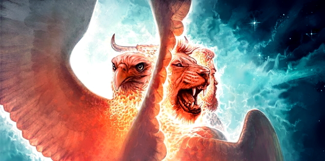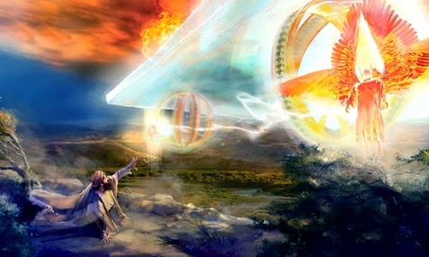 Dios le habló a Ezequiel por medio de visiones muy misteriosas. Junto al río Quebar se le aparece el Señor en un carro de fuego llevado por cuatro seres vivientes los cuales tenían forma de león, de toro, de águila y de hombre (el león significaba valor, el toro, la fuerza, el águila, la elevación hasta muy alto, y el hombre, la inteligencia). Esto significaba que toda la creación representada por los cuatro seres, le servirá y le obedecerá al Creador.