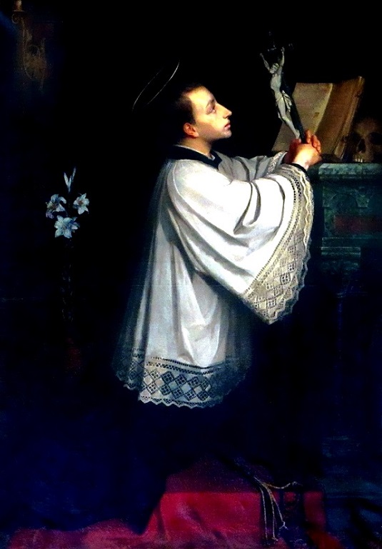 Su director espiritual fue el gran sabio jesuita San Roberto Belarmino, el cual le aconsejó tres medios para llegar a ser santo: 1º. Frecuente confesión y comunión. 2º. Mucha devoción a la Sma. Virgen. 3ro. Leer vidas de Santos.