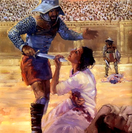 Pero luego ese pueblo cruel pidió que las volvieran a traer y que les cortaran la cabeza allí delante de todos. Al saber esta noticia, las dos jóvenes valientes se abrazaron emocionadas, y volvieron a la plaza. A Felicidad le cortaron la cabeza de un machetazo, pero el verdugo que tenía que matar a Perpetua estaba muy nervioso y equivocó el golpe. Ella dio un grito de dolor, pero extendió bien su cabeza sobre el cepo y le indicó al verdugo con la mano, el sitio preciso de su cuello donde debía darle el machetazo. Así esta mujer valerosa hasta el último momento demostró que si moría mártir era por su propia voluntad y con toda generosidad.