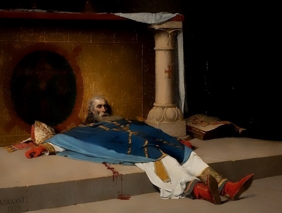 Al oír semejante exclamación de labios del mandatario, cuatro sicarios se fueron donde el santo arzobispo resueltos a darle muerte. Estaba él orando junto al altar cuando llegaron los asesinos. Era el 29 de diciembre de 1170. Lo atacaron a cuchilladas. No opuso resistencia. Murió diciendo: "Muero gustoso por el nombre de Jesús y en defensa de la Iglesia Católica". Tenía apenas 52 años.