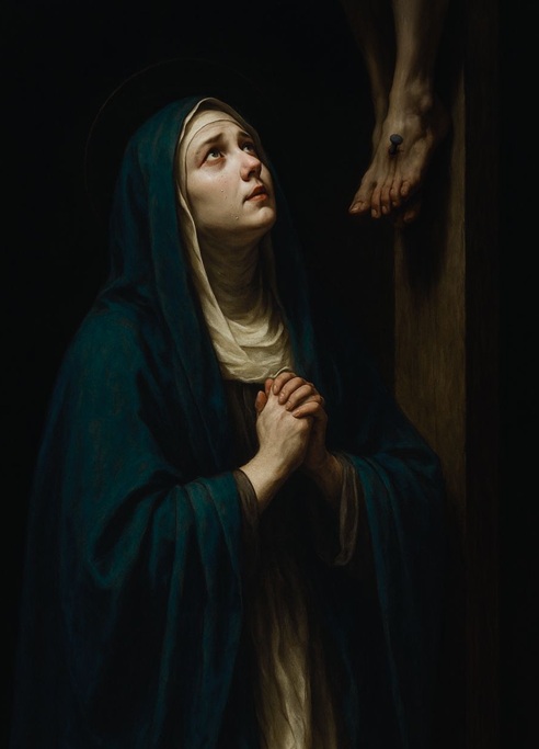 La Iglesia nos exhorta a entregarnos sin reservas al amor de María y llevar con paciencia nuestra cruz acompañados de la Madre Dolorosa. Ella quiere de verdad ayudarnos a llevar nuestras cruces diarias, porque fue en el calvario que el Hijo moribundo nos confió al cuidado de su Madre. Fue su última voluntad que amemos a su Madre como la amó Él.
