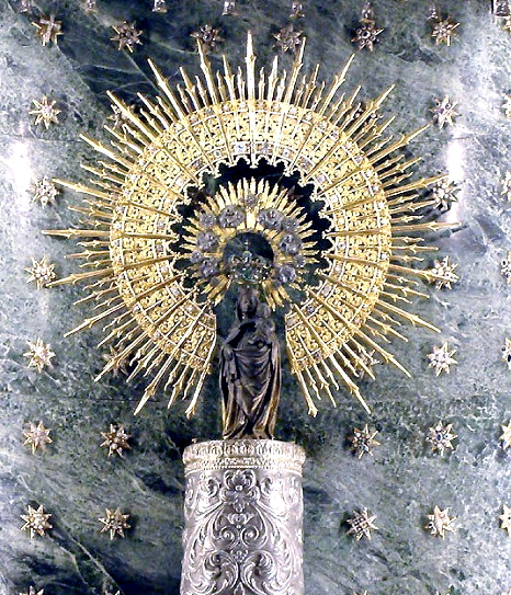 El lugar más sagrado del templo es la santa columna sobre la cual se apareció la Virgen. El pilar es de jaspe, mide casi 2 metros y la pequeña estatua es de madera y tiene 38 cm.